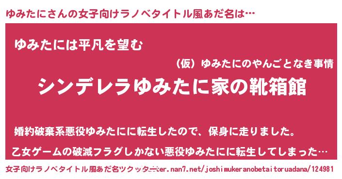| 男性向けラノベタイトル風あだ名 | 『緋弾のユミタニ』『魔弾の王とゆみたに』 |