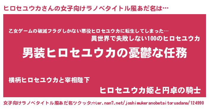 | 男性向けラノベタイトル風あだ名 | 『うちのヒロセユウカが世界を掌握している!』 |