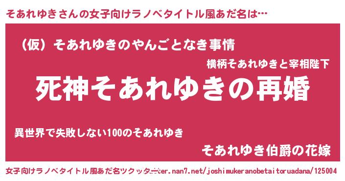 | 男性向けラノベタイトル風あだ名 | 『ノーゲーム・ノーソアレユキ』 |