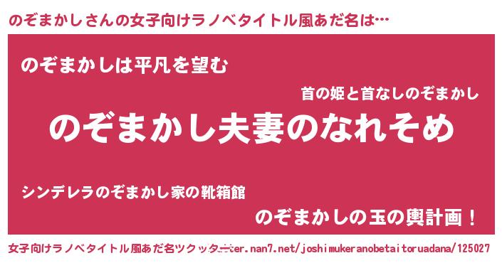 | ピコ太郎風あだ名 | 『ノノ太郎』『ノゾ六郎』『ノコ八郎』 |