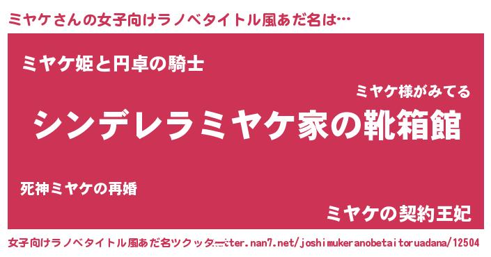 | 男性向けラノベタイトル風あだ名 | 『緋弾のミヤケ』 |