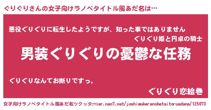 | 男性向けラノベタイトル風あだ名 | 『冴えないぐりぐりの育てかた』 |