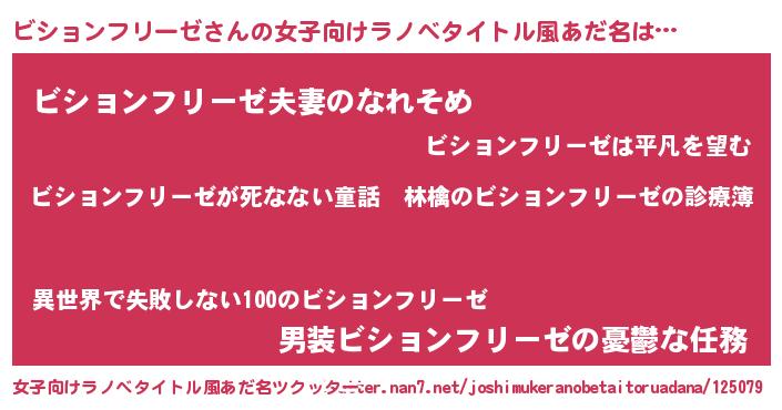 | 男性向けラノベタイトル風あだ名 | 『魔弾の王とビションフリーゼ』 |