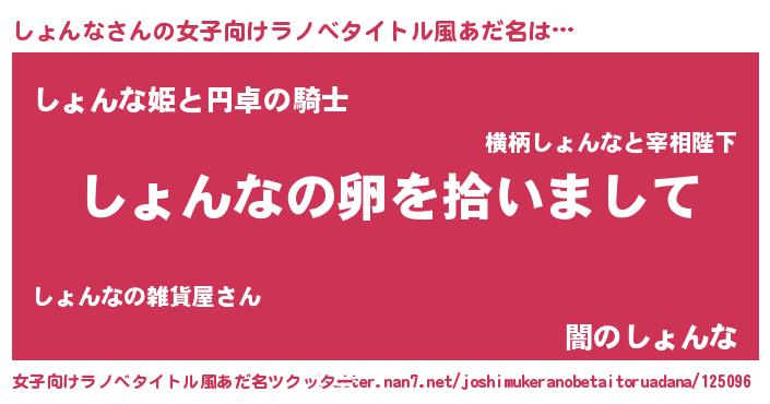 | 胡散臭い通販商品みたいなあだ名 | 『伝統あるサプリメント…その名も「しょんな」』 |
