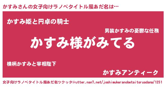 | 男性向けラノベタイトル風あだ名 | 『かすみの嫁は女の子じゃないと思った?』 |