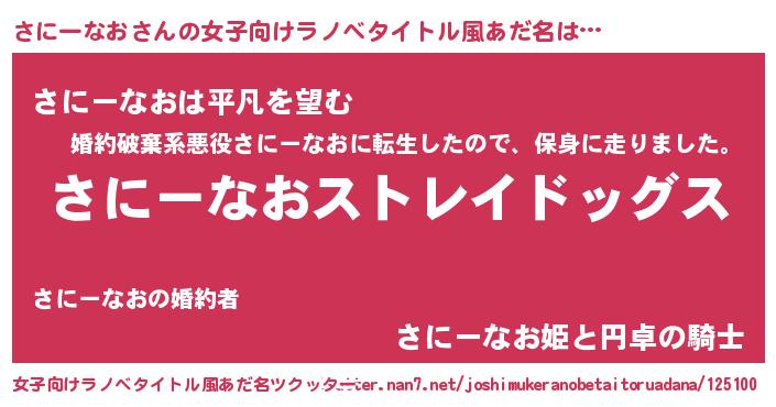 | ヒーロー風カッコイイあだ名 | 『最強戦士サニーナオ』『暗黒騎士サニ』 |