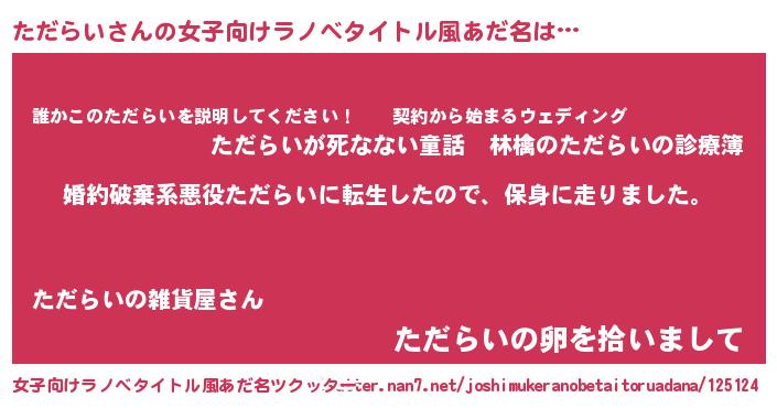 | 料理風あだ名 | 『ただらいごはん』 |
