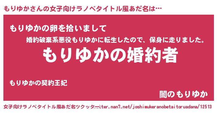 | 胡散臭い通販商品みたいなあだ名 | 『運命の人と巡り会える高級そうな絵画…その名も「もりゆか」』 |