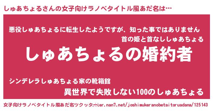 | 欧米人風あだ名 | 『しゅあちょるクリステル』 |