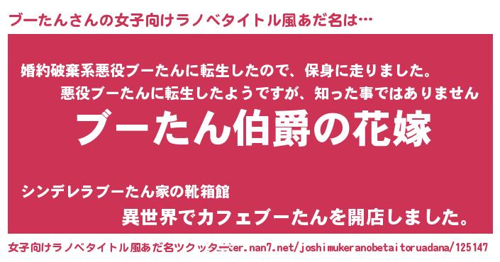 | ファンタジー風あだ名 | 『エターナルブータンー』 |