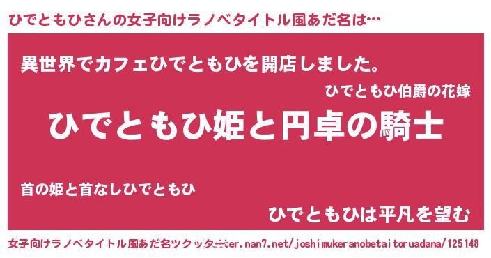 | 男性向けラノベタイトル風あだ名 | 『ひでともひの憂鬱』 |