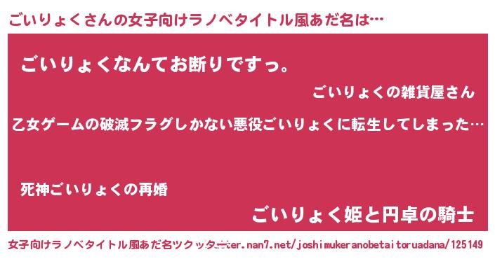 | 意味不明あだ名 | 『住所不定無職ごいりょく(98歳)』 |