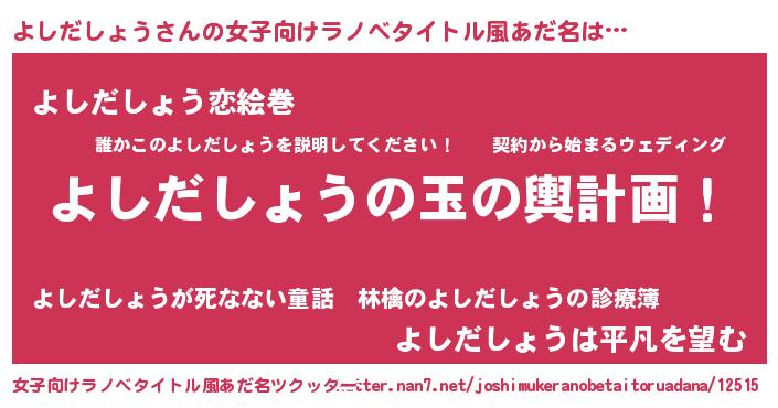 | 男性向けラノベタイトル風あだ名 | 『転生したらよしだしょうだった件』 |