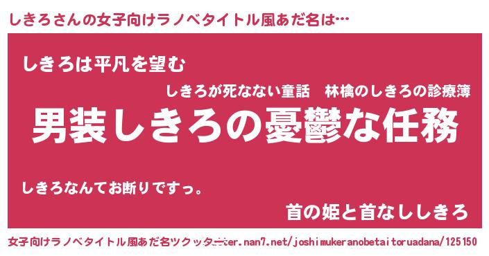 | 男性向けラノベタイトル風あだ名 | 『うちのしきろが世界を掌握している!』 |
