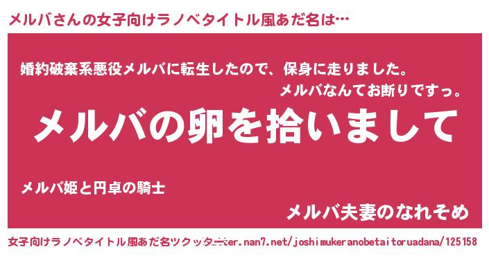 意味不明あだ名 | 『とにかく怪しいメルバ』『自称メルバ』 |