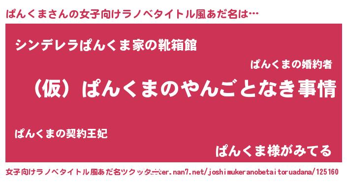 | 意味不明あだ名 | 『ペロリンぱんくま』『永久保存ぱんくま』 |