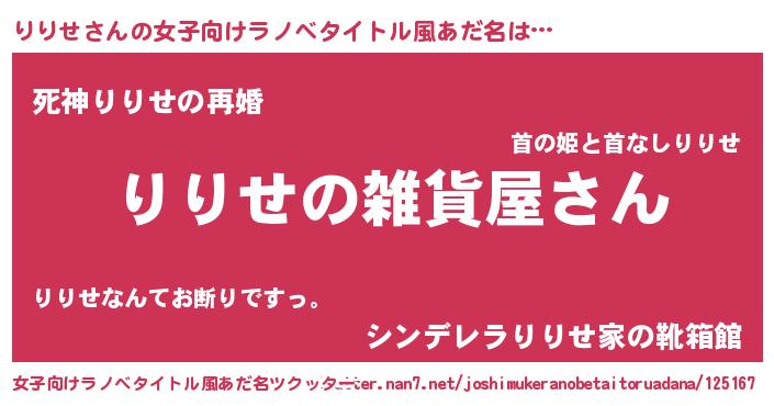 | 男性向けラノベタイトル風あだ名 | 『やはりりりせの青春ラブコメはまちがっている 』 |