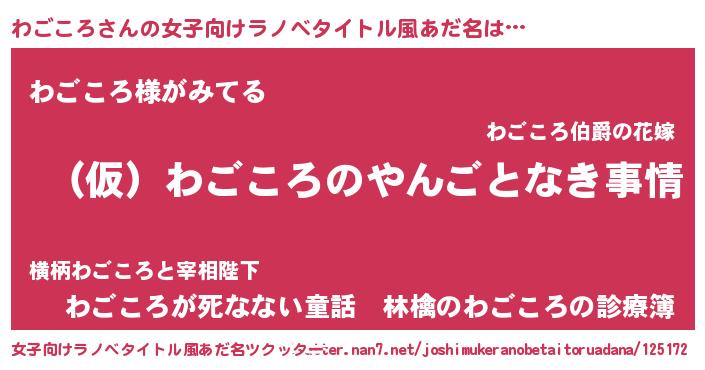 | 男性向けラノベタイトル風あだ名 | 『わごころの憂鬱』『魔弾の王とわごころ』 |