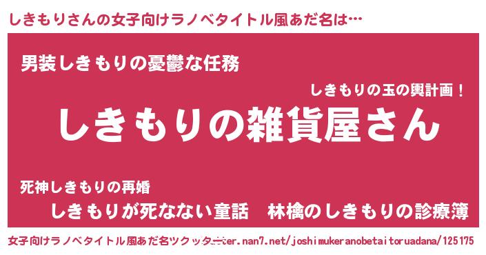 | ヘコむあだ名 | 『つくし』『しきを』『しきもり(笑)』 |