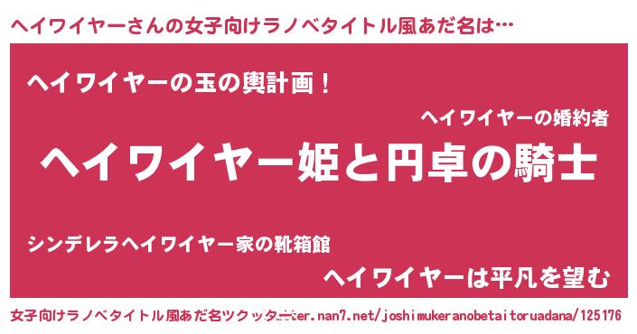 | 男性向けラノベタイトル風あだ名 | 『ヘイワイヤーアートオンライン』 |