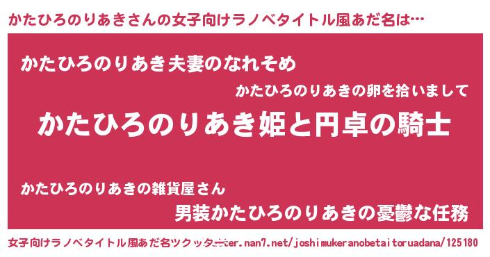 | 男性向けラノベタイトル風あだ名 | 『かたひろのりあきの憂鬱』 |