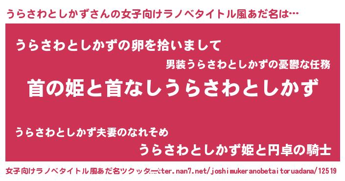 | 意味不明あだ名 | 『とにかく怪しいうらさわとしかず』 |