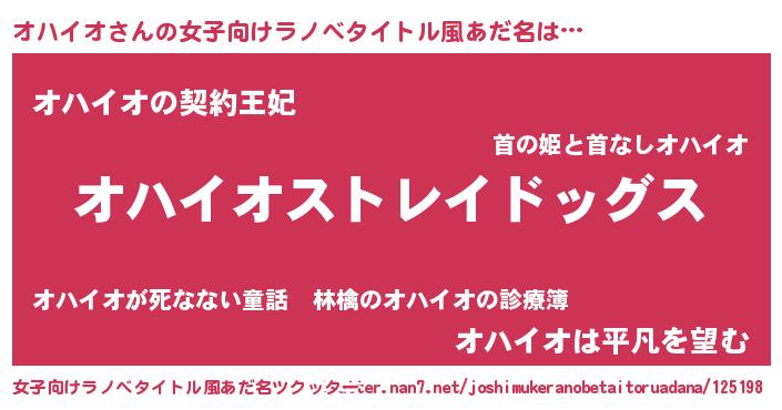 | 男性向けラノベタイトル風あだ名 | 『Re:オハイオから始める異世界生活』 |