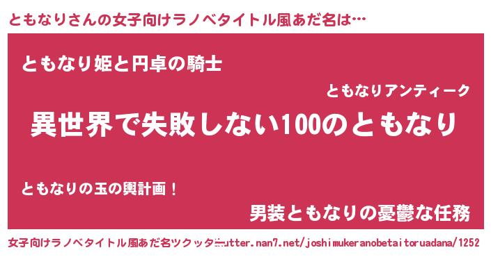 | 男性向けラノベタイトル風あだ名 | 『ともなりという概念が存在しない退屈な世界 』 |