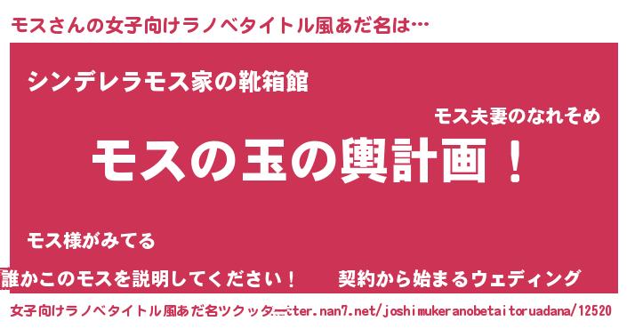 | 男性向けラノベタイトル風あだ名 | 『モス~年齢イコール彼女いない歴の魔法使い~』 |