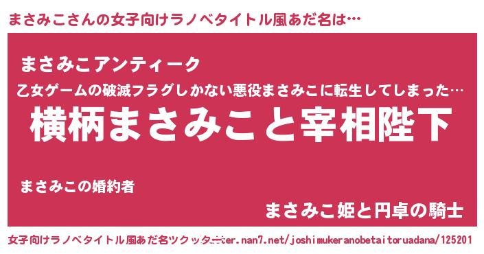 | 男性向けラノベタイトル風あだ名 | 『まさみこに滅ぼされるだけの簡単なお仕事です』 |