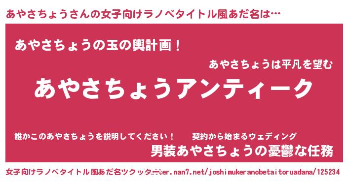 | 男性向けラノベタイトル風あだ名 | 『魔法科高校のあやさちょう』 |