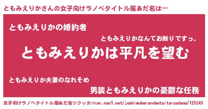 | ポケモン風あだ名 | 『ヒトモミエリカ』『トモミダネ』 |