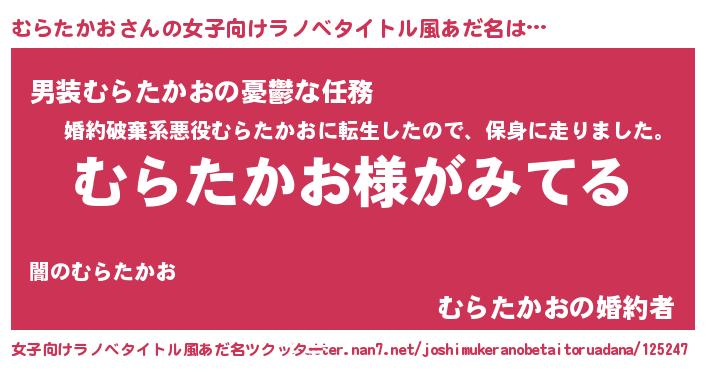 | 男性向けラノベタイトル風あだ名 | 『むらたかおの嫁は女の子じゃないと思った?』 |