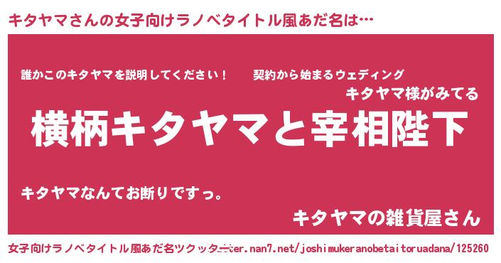 | 男性向けラノベタイトル風あだ名 | 『キタヤマに滅ぼされるだけの簡単なお仕事です』 |