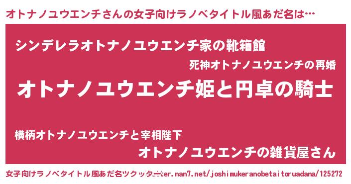 | 男性向けラノベタイトル風あだ名 | 『オトナノユウエンチの憂鬱』 |