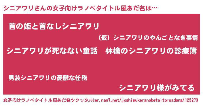 | 胡散臭い通販商品みたいなあだ名 | 『ハリウッド女優が絶賛した100年もののヴィンテージワイン…その名も「シニアワリ」』 |
