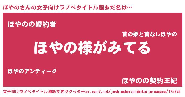 | 意味不明あだ名 | 『とにかく怪しいほやの』『自称ほやの』 |