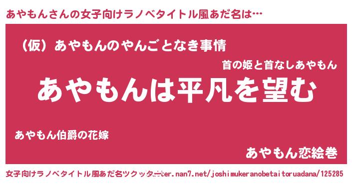 | ピコ太郎風あだ名 | 『アヤ五郎』『アコ二郎』『アア太郎』 |