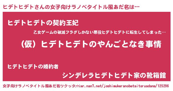 | 胡散臭い通販商品みたいなあだ名 | 『必ず成功するブレスレット…その名も「ヒデトヒデト」』 |