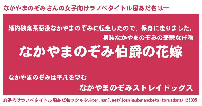 | 男性向けラノベタイトル風あだ名 | 『やはりなかやまのぞみの青春ラブコメはまちがっている 』 |