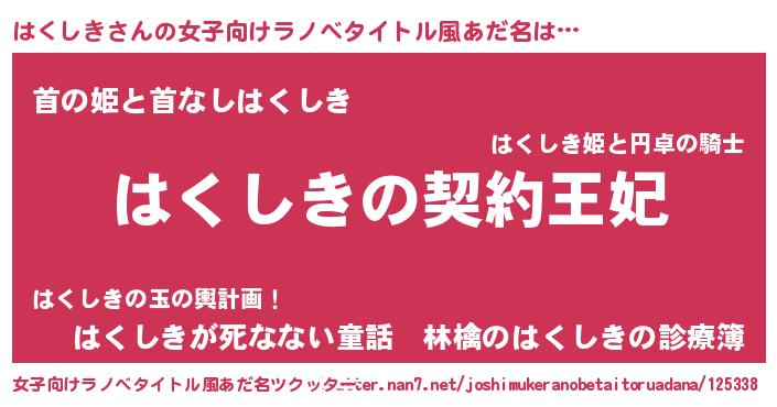 | ヘコむあだ名 | 『はくしき(小並感)』『はくふぇ~』 |