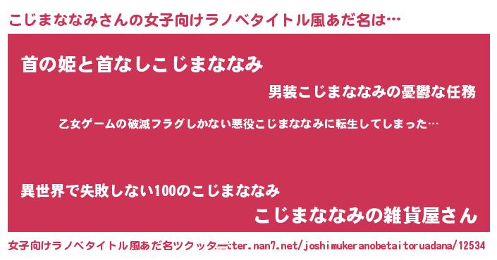 | 胡散臭い通販商品みたいなあだ名 | 『世界中を虜にした世界で10本だけ現存している希少なブランデー…その名も「こじまななみ」』 |