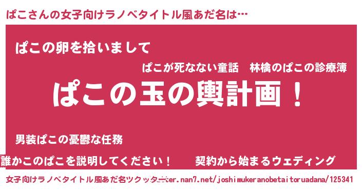 | 男性向けラノベタイトル風あだ名 | 『転生したらぱこだった件』 |