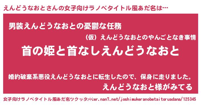 | 男性向けラノベタイトル風あだ名 | 『はたらくえんどうなおとさま!』 |
