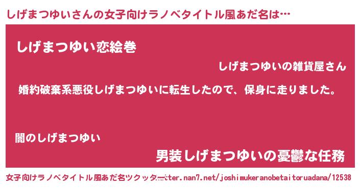 | 男性向けラノベタイトル風あだ名 | 『転生したらしげまつゆいだった件』 |