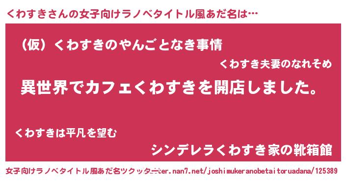 | ヘコむあだ名 | 『くわすき(笑)』『くわっふぃ~』 |