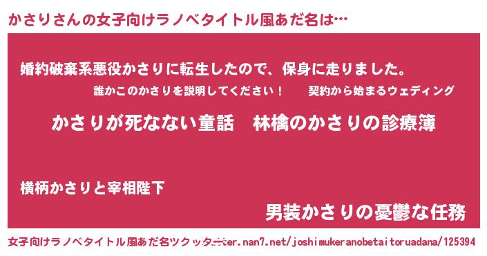 | 男性向けラノベタイトル風あだ名 | 『魔弾の王とかさり』『カサリスレイヤー』 |