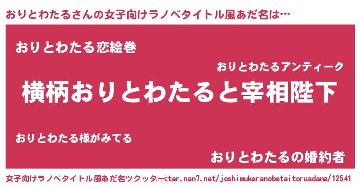 | 男性向けラノベタイトル風あだ名 | 『おりとわたるに滅ぼされるだけの簡単なお仕事です』 |