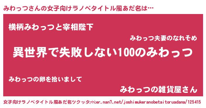 | 男性向けラノベタイトル風あだ名 | 『みわっつという概念が存在しない退屈な世界 』 |