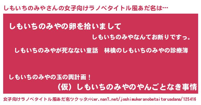 | 意味不明あだ名 | 『住所不定無職しもいちのみや(11歳)』 |